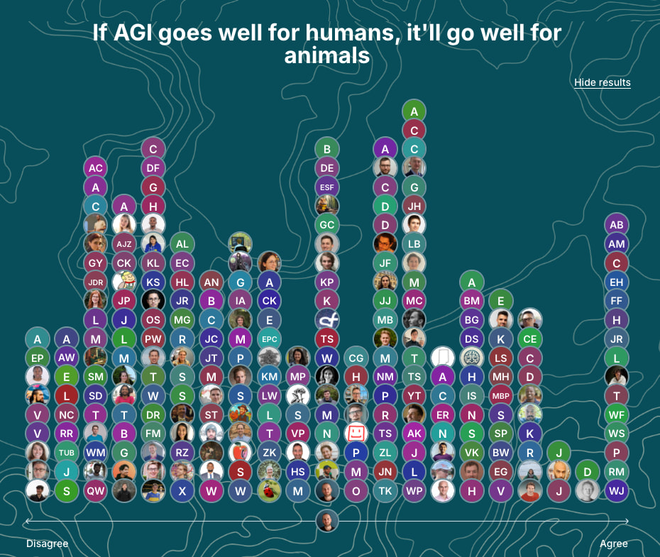 I guess that means I believe there's a 50% chance that there's a 70% chance that AI goes well for animals? So I should vote in the exact middle of the spectrum?
