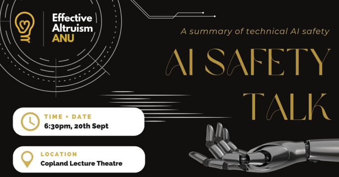Given the increasing emergence and advancement of artificial intelligence, AI safety has become an increasingly large cause area in the EA community. For our week 6 event, our speaker David Quarel will be presenting a talk on the current state of AI safety research.