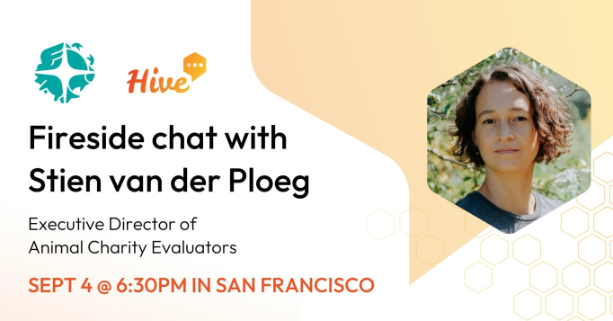 - 7:00-8:00: Fireside chat with Stien (Executive Director, Animal Charity Evaluators) and Constance (Co-founder of Hive) + audience Q&A