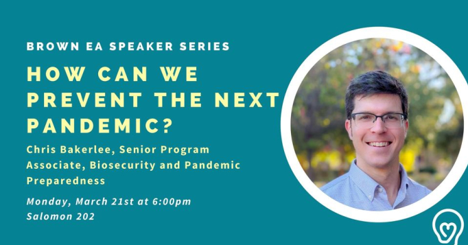 Join us on Monday, March 21st at 6:00pm to hear Chris Bakerlee, one of the world's leading experts in biosecurity, give an overview of how we can mitigate biorisks.