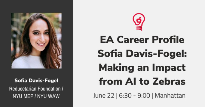 Come hear about Sofia's expansive experience working with diverse EA cause areas and organizations. She'll also share her struggles, rejections, pain points, and bottlenecks throughout the years, and the takeaways and recommendations that she has to offer as a result.
