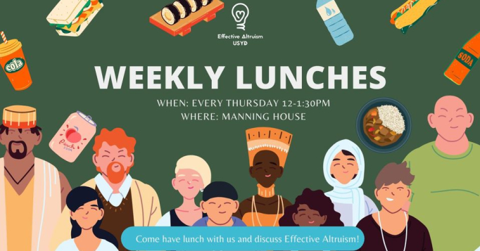 Come join us every THURSDAY for our weekly lunches! Meet like-minded people and engage in casual discussions about Effective Altruism.