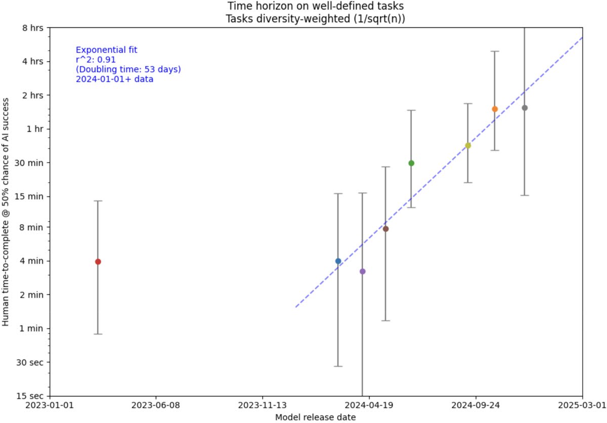 A trend that is receiving particular attention is autonomous capability. Drawing these benchmarks out predicts that, by the end of 2026, AI agents will accomplish in a few days what the best software engineering contractors could do in two weeks. In a year or two, some say, AI agents might be able to automate 10% of remote workers.