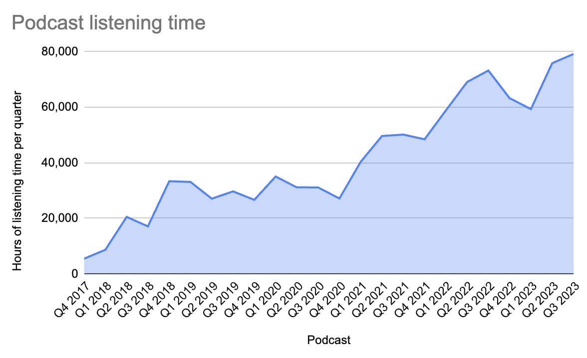 My understanding is that this refers to the combined engagement time reported across Spotify, Apple and Google.