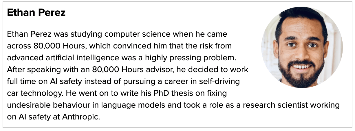 This kind of work means that we have a history of helping people on their path to working on AI safety. Neel is one example of this.