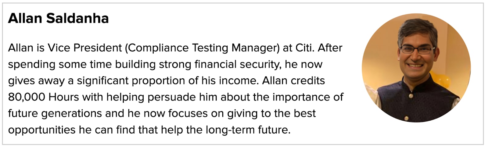 We have tracked hundreds of cases where people have made a major decision to pursue a higher-impact path – such as deciding to go to grad school, switching causes, or taking a particular job – which they say they might not have done without us.