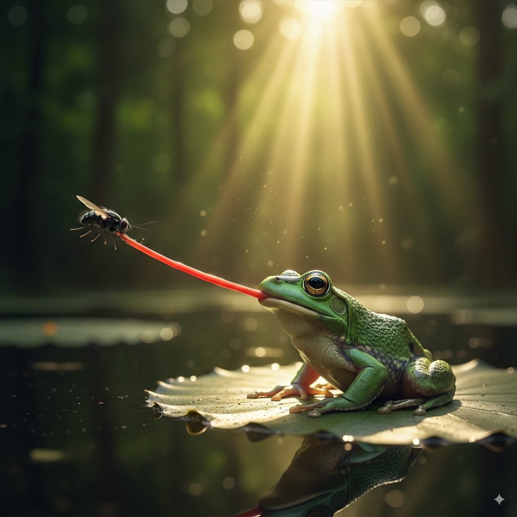 To use an often cited example, consider a frog snapping its tongue at a fly which passes across its visual field. The frog produces a representation FLY which is then consumed by the motor system in the form of a tongue-snap. The content lies in-between the producer (visual field) and consumer (motor system) mechanisms. The producer represents FLY because this historically led to the consumer doing the right thing in the form of a tongue-snap. In this case, the representation FLY takes on the meaning nutritious meal for a frog where it would take on a different meaning (say annoying-buzzy-thing) for a human whose consumer mechanism is a hand swatting it out of the way.