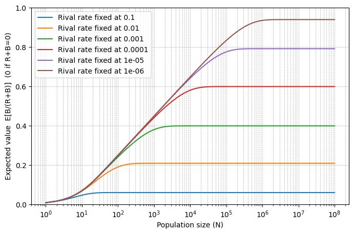 It’s also possible that the rate of rivals won’t be tightly correlated with the rate of bodhisattvas. If your lower bound on q is substantially greater than your lower bound on p, then the value will plateau once the population is greater than 1/q.