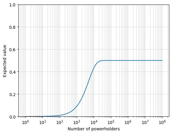 - I estimate that you get log returns on increasing the number of powerholders up to 106, after which it plateaus.