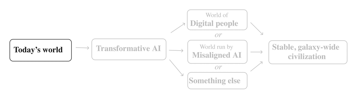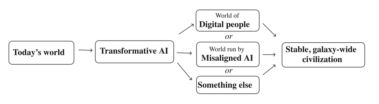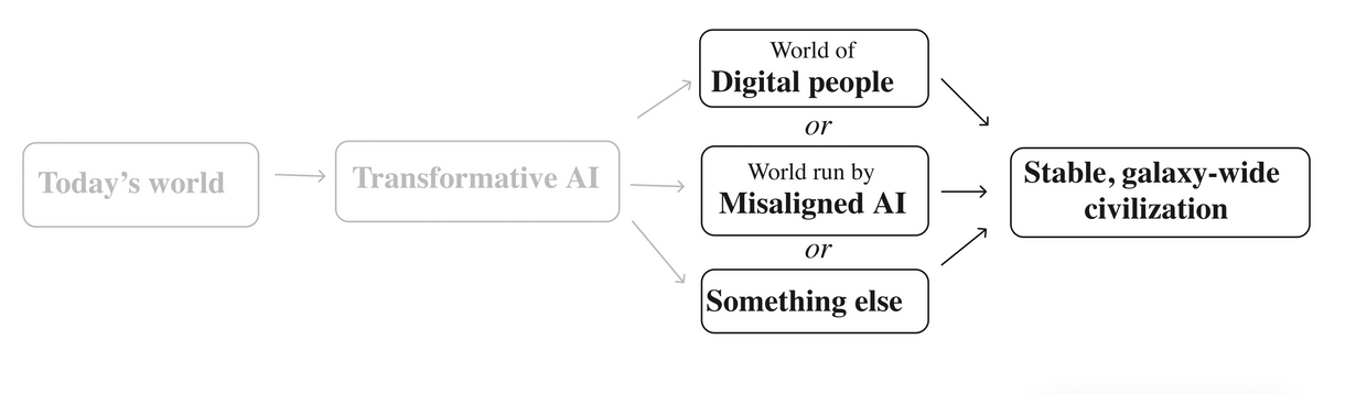 - Whatever the main force in world events is (perhaps digital people, misaligned AI, or something else) will create highly stable civilizations that populate our entire galaxy for billions of years to come. The transition taking place this century could shape all of that.