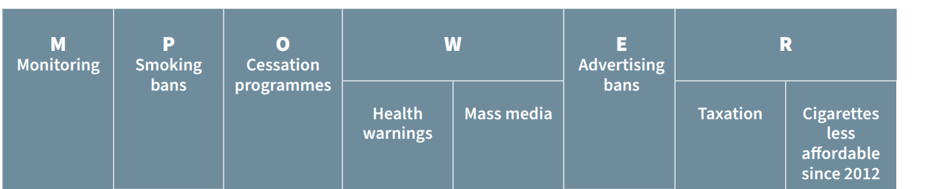 - There are evidence-based policies—outlined by the WHO’s MPOWER framework—that countries can adopt to reduce tobacco use.