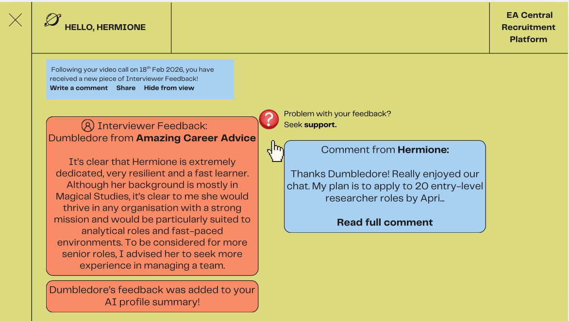 As well as career advisers feedback, previous recruiters’ interview feedback could be similarly added to the platform.