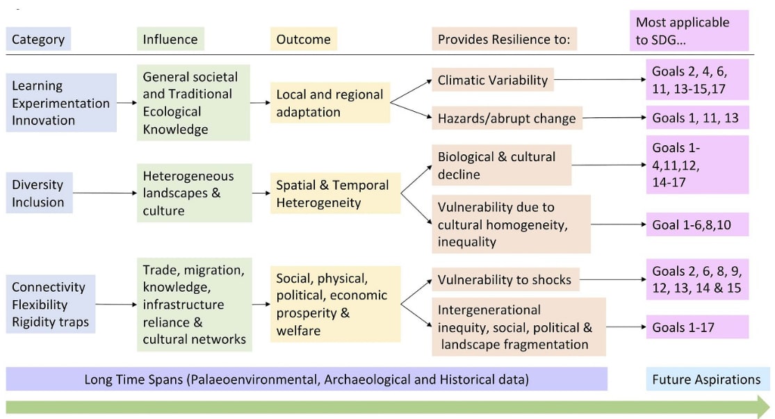 Figure 2: Schematic showing pathways by which information in historical and archaeological records become relevant to the SDGs (Allen et al., 2022)