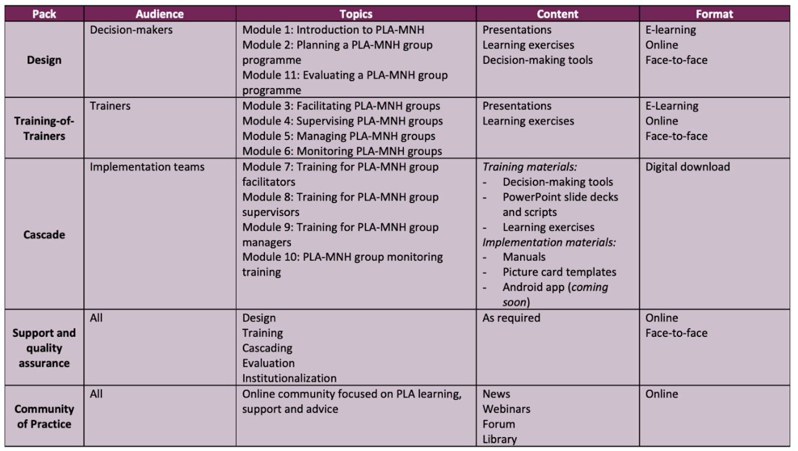 As we were concerned about the tractability of scaling of PLA, especially the training aspect, the following is more information on what the training looks like to clarify any uncertainties. We are mostly basing this on the one study on the scaled-up version of the intervention, though we note that the scale of that is probably larger than what the new charity would achieve, so it provides more of an indication of what is possible.