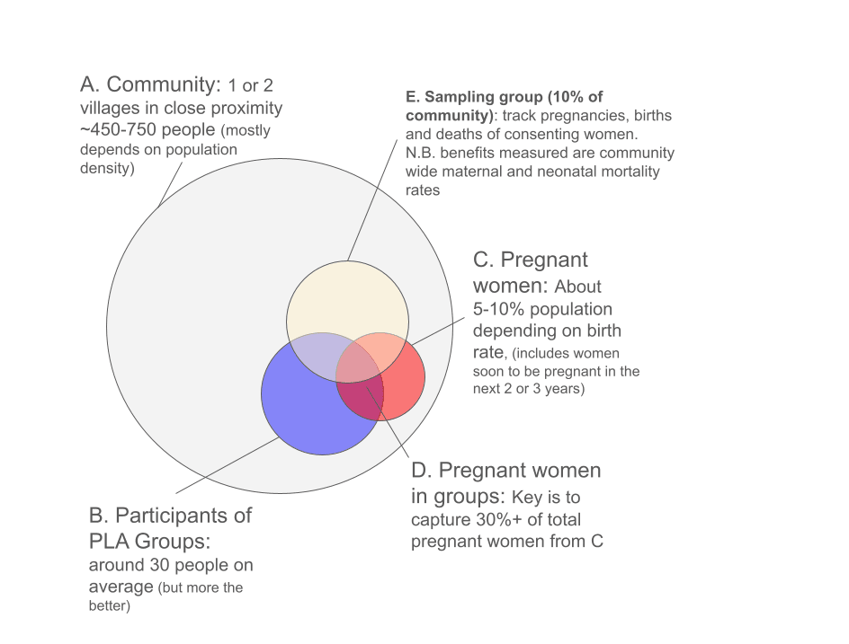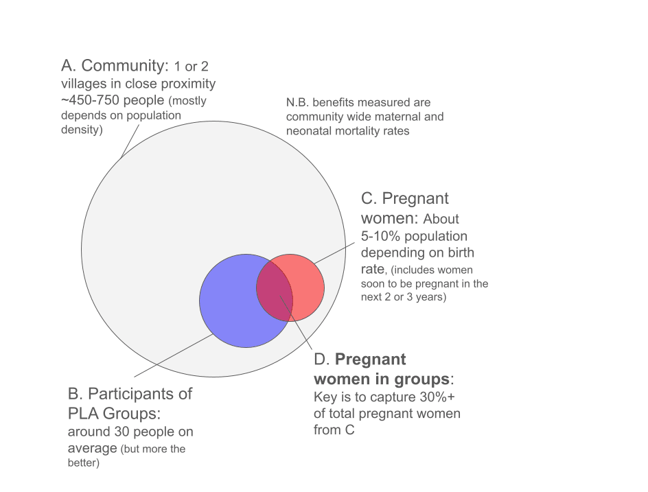 Evidence strongly supports the effectiveness of PLA groups in reducing maternal and neonatal mortality. A meta-analysis of seven randomized controlled trials (RCTs) indicates that PLA is a cost-effective method to enhance newborn and maternal survival (Prost et al., 2013). The critical predictor of effectiveness is the proportion of pregnant (or soon-to-be pregnant) women in the community captured by the groups - this should be at least 30%.
