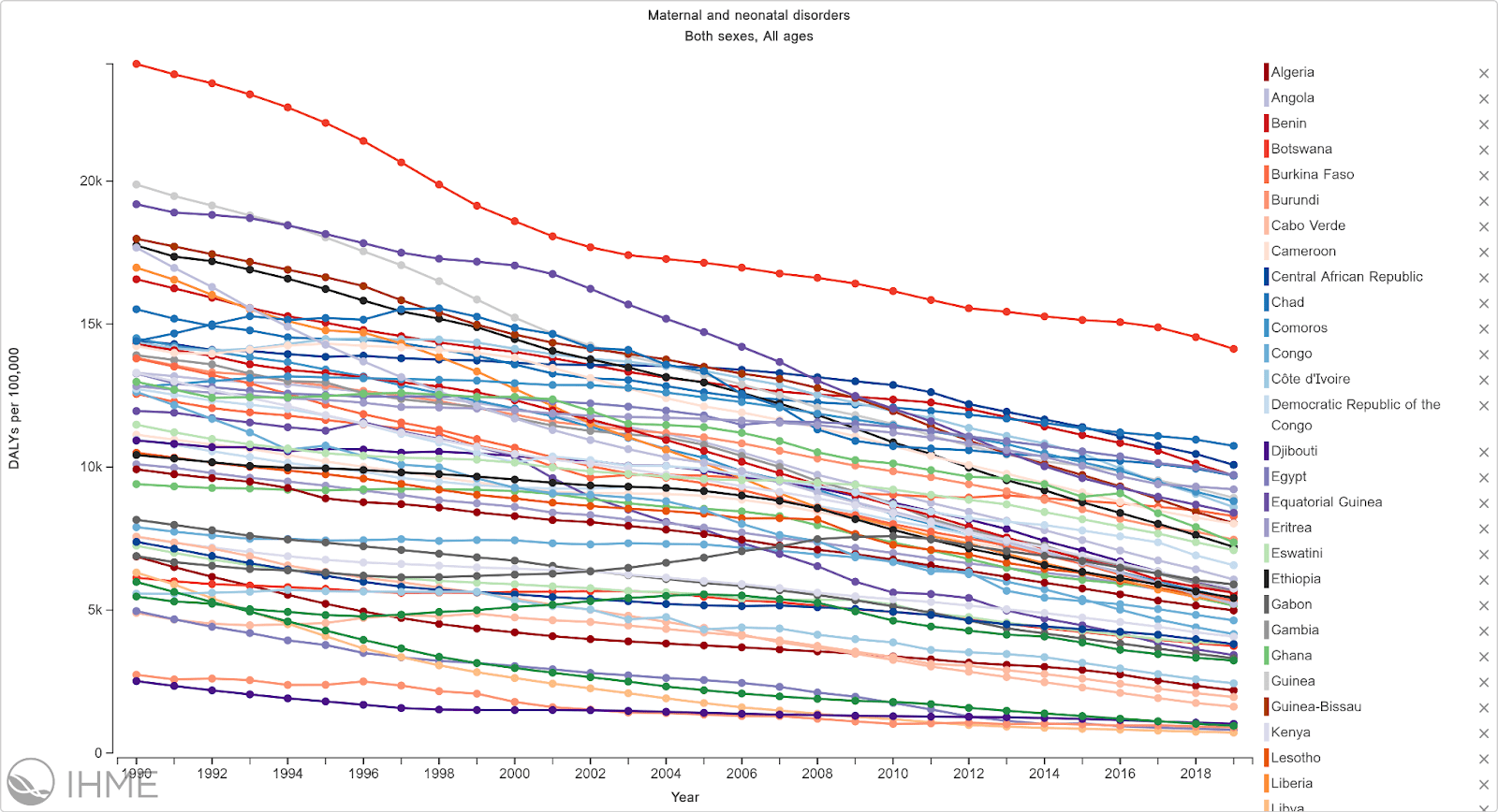Figure 3: DALY’s lost due to maternal and neonatal disorders in Africa (GBD)