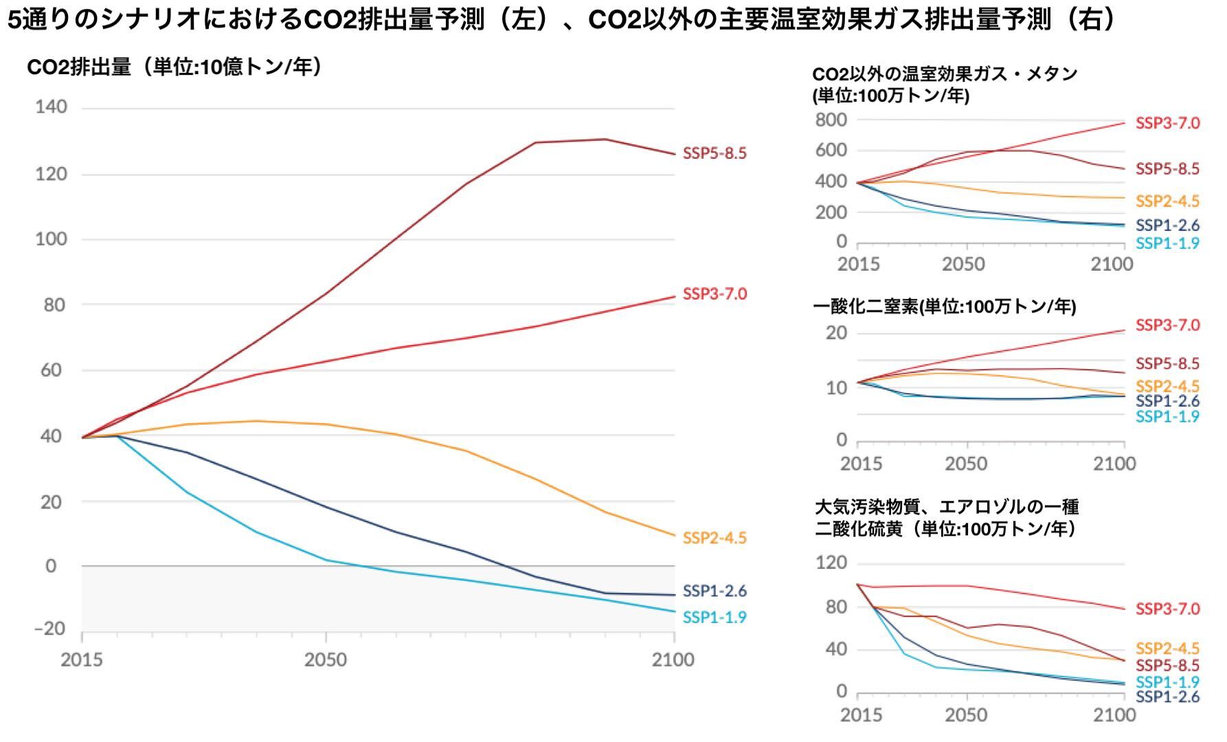 IPCCの第6次評価報告書では以下のような具体的シナリオが検討されました。