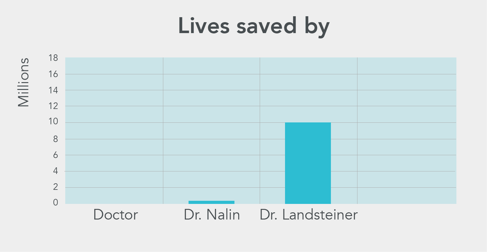 しかし、医学研究の領域に限ってみても、ナリン先生はインパクトの大きいキャリアの最も極端な例にはほど遠い。例えば、カール・ラントシュタイナーによる血液型の発見は、輸血を可能にしたことで何千万人の命を救ったという試算もある。