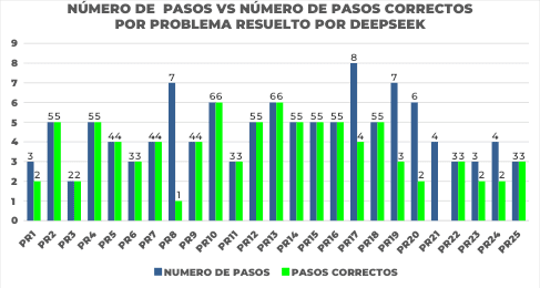 There is no statistically significant evidence (at a significance level of 0.05) to conclude that there is a difference in the distribution of the raw number of correct steps per problem between DeepSeek and ChatGPT-4 under the Zero-Shot prompting technique on this set of 25 problems. Both models showed a similar number of correct steps overall, and the individual differences observed were not sufficiently consistent to indicate a systematic superiority of one model over the other in this metric under the Zero-Shot technique.