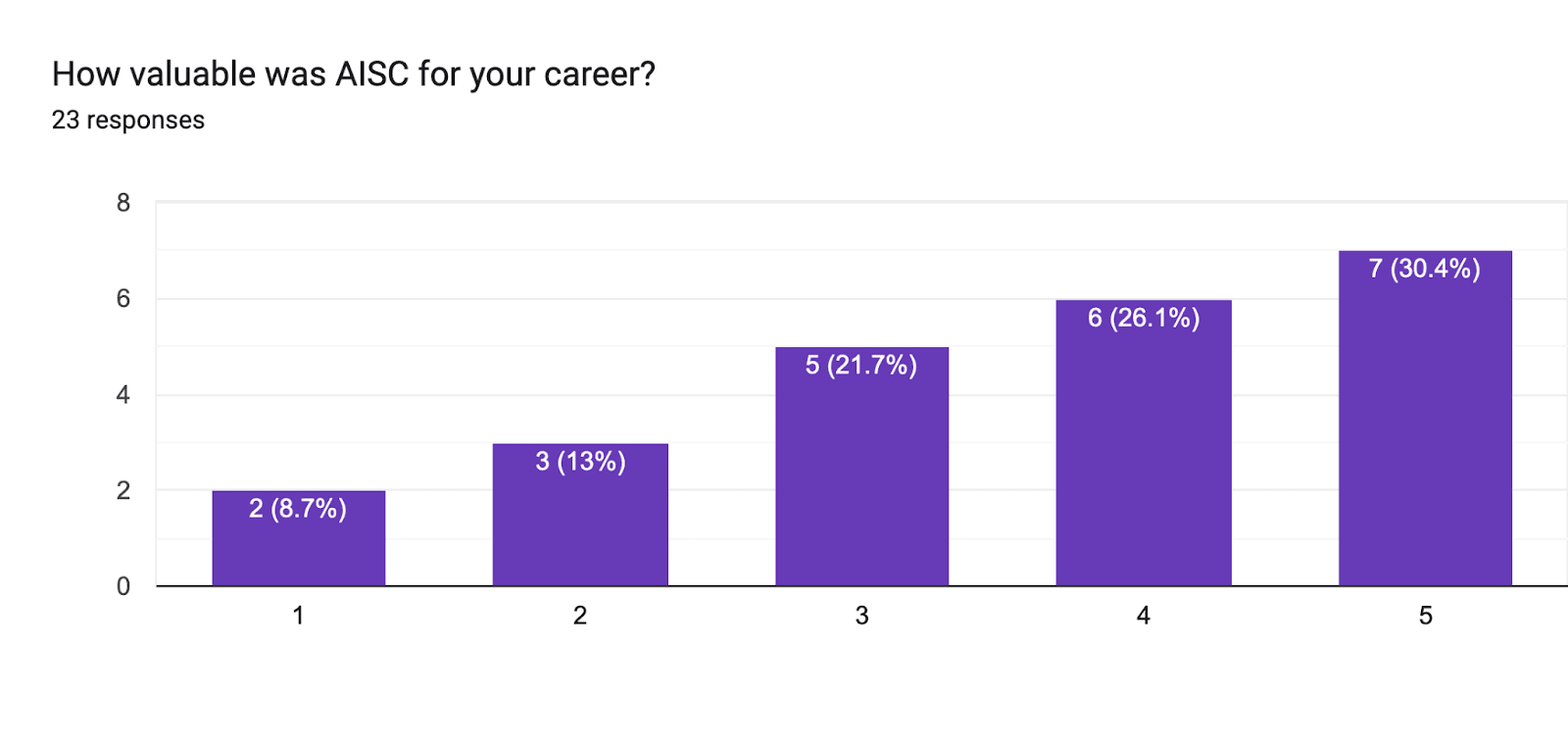 Additionally, 30% of respondents believed AISC greatly helped their career: