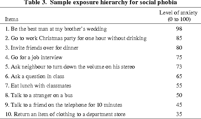 - Construct a hierarchy of fear (see below for an example)