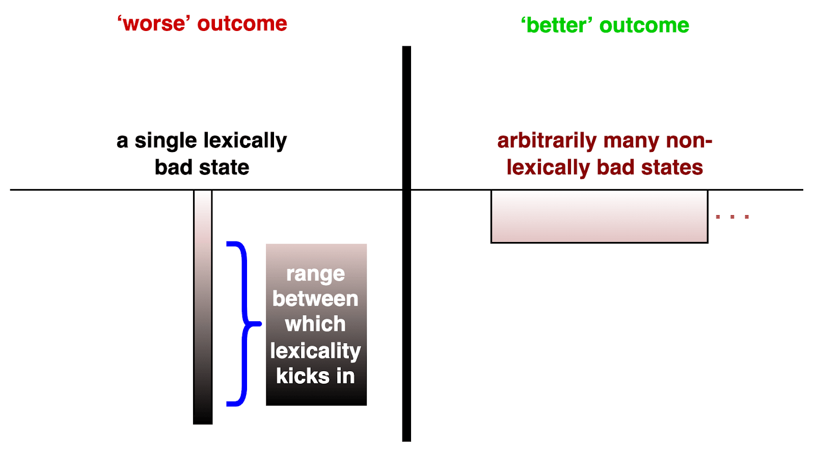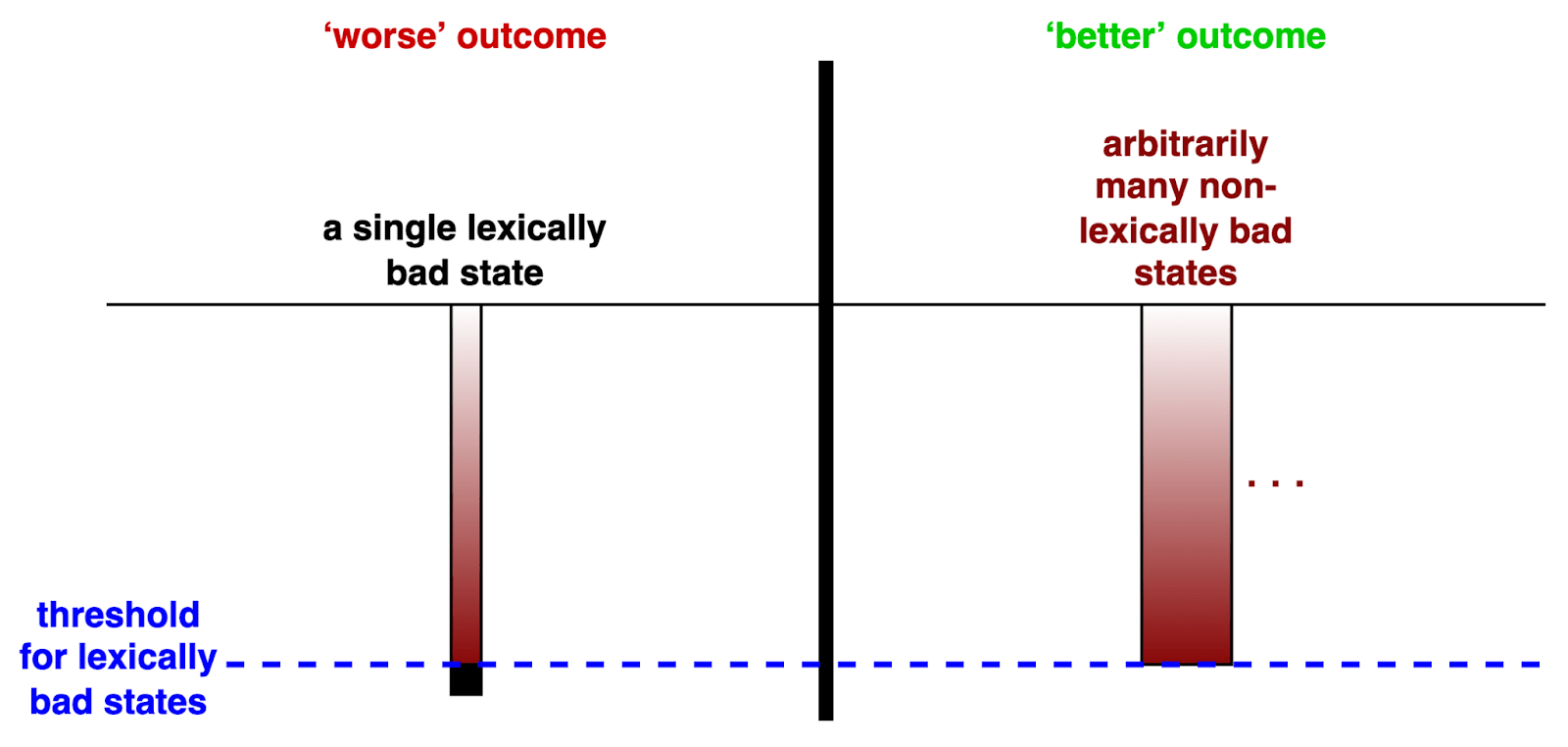 - There is a lexical threshold between some bads (e.g. bearable and unbearable suffering).
