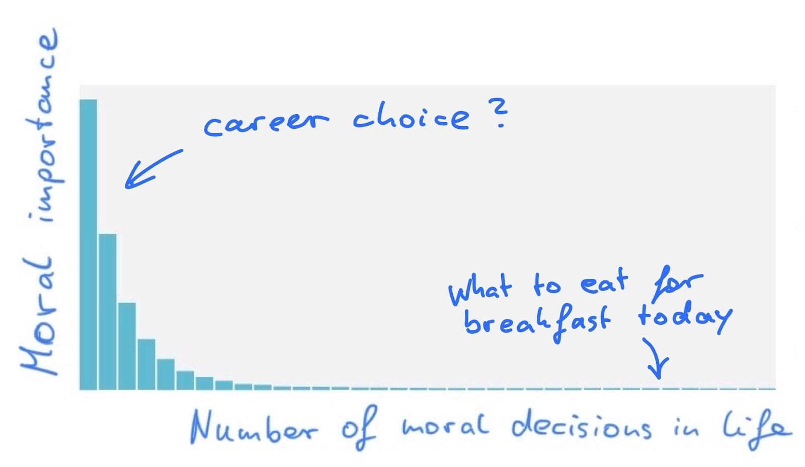 The intuition is that a few decisions in life are of vast moral importance compared to many others, which are way less important.