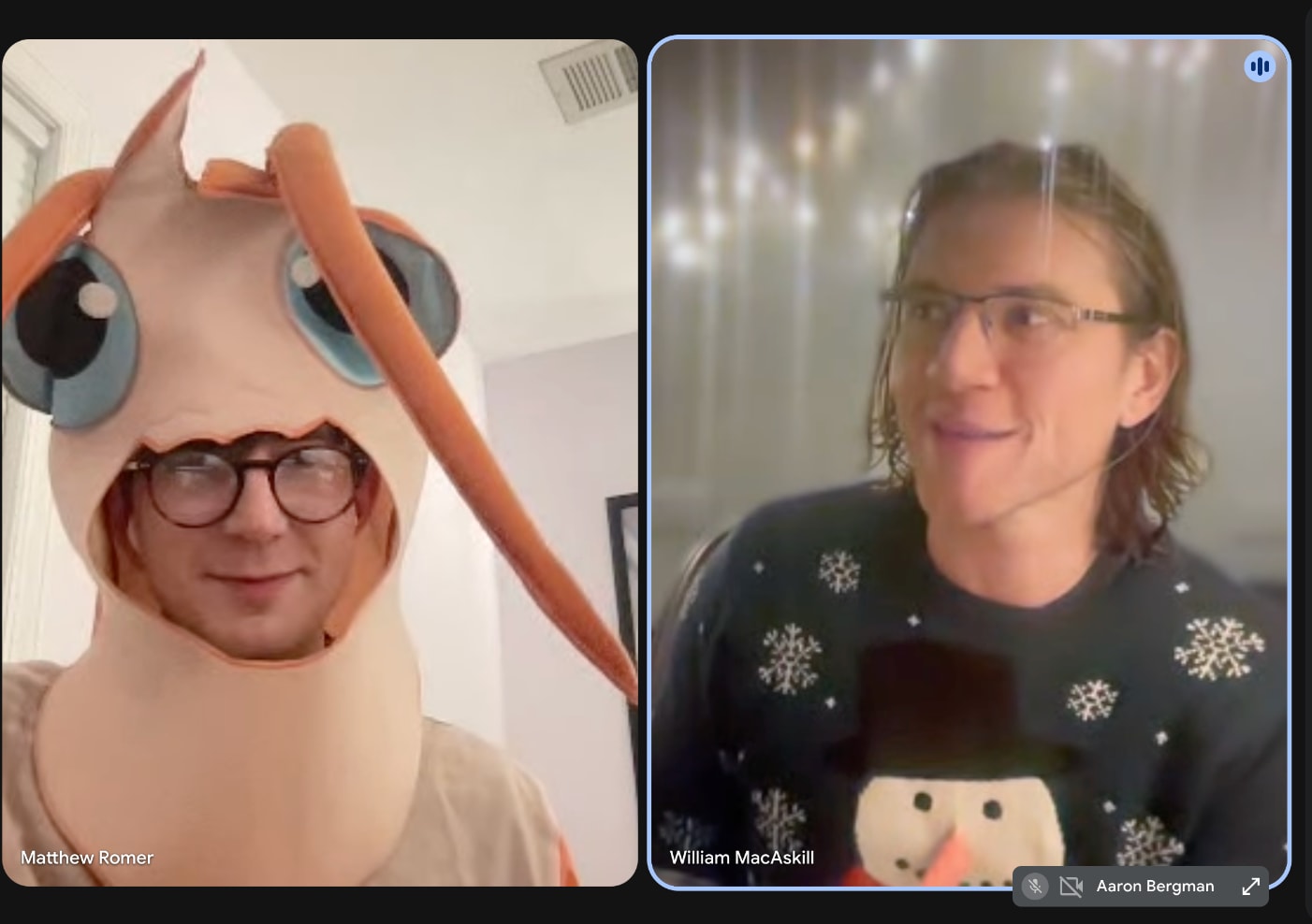 We believe that effective giving should be fun, communal, and widely celebrated. We’ve been unabashedly posting our dank EA memes and fundraiser incentives, like our interview with Will MacAskill in a shrimp costume or our musical rendition of Lewis Bollard’s TED Talk. In a world with so many grave problems to address, we’ve tried to bring a little light to this corner of the internet. So far we’ve raised $13,343 and we still have eight days to go!