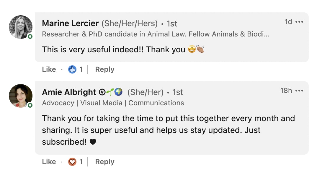 - I told myself many times “Who am I to create a newsletter for all things animal advocacy?” But then, people told me they find it insightful and I thought “If I don’t do it, likely no one will”