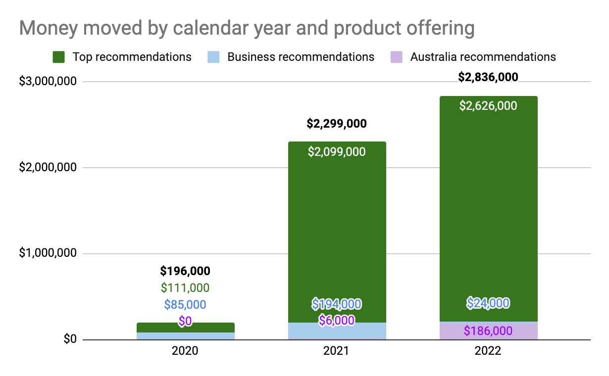 We estimate that we influenced $2.8 million of donations and purchases towards our recommendations in 2022. And since founding in 2020, we have influenced an estimated $5.5 million in high-impact climate giving, 7.5x our operating costs.