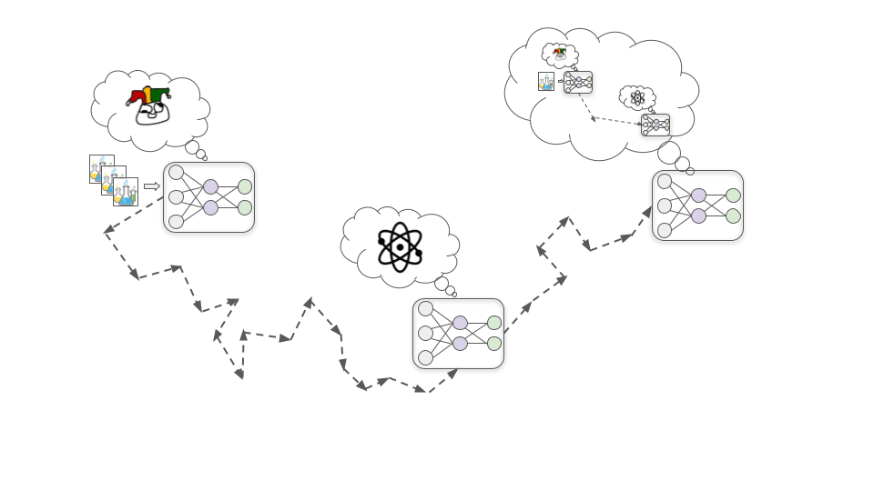 深層学習では、基本的に、ニューラルネットワークを使ったモデルを調整する最適な方法を探索し、モデルにタスクをうまくこなさせることを目指します。ニューラルネットワークとは、様々な強度の接続で互いに接続された多くのデジタルニューロンを持つデジタル「脳」のようなものです。このプロセスは「訓練(トレーニング、学習)」と呼ばれ、多くの試行錯誤を伴います。