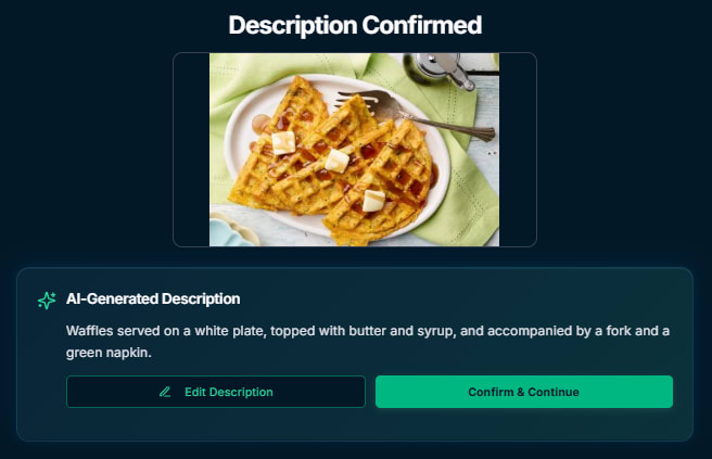 - Upload: The user writes a description or takes a photo of a food item, such as a packaged product or a meal.