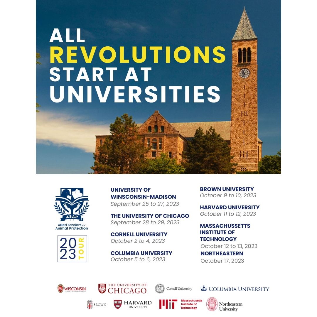 TL;DR: For the first time, we at Allied Scholars for Animal Protection (ASAP) are creating a systematic and unified infrastructure for the animal advocacy movement at universities across the US and beyond. Our mission is to unite, educate and empower students who are passionate about ending animal exploitation and driving systemic change. We urgently need support to sustain our efforts and expand to more universities.