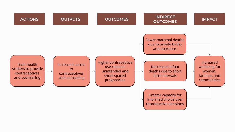 We believe that family planning may be particularly impactful when the full breadth of its impacts are modelled in comparison to benchmark interventions such as cash transfers or malaria net distribution. By focusing on only one or two metrics, two interventions may appear similarly impactful when in fact there is an order of magnitude difference in their outcomes. Through our pilot evaluation and modelling, we plan to demonstrate whether or not this is the case for our work on family planning.
