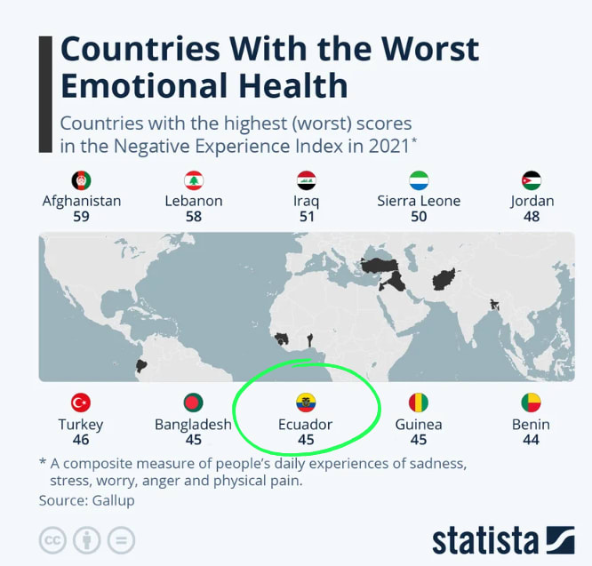 This situation is worsened by low public investment. Despite a 2021 Gallup poll ranking Ecuador among the top 10 worst countries in the world for emotional health, only 0.04% of the national healthcare budget is dedicated to mental health - 9x less than other Latin American countries. Therefore, most mental health conditions, especially depression, go untreated.