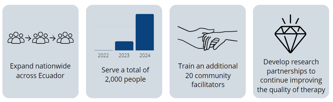 - Facilitate our expansion into a new region in Ecuador. This includes the establishment of training and outreach teams, bringing vital mental health care to areas currently underserved and neglected, beyond our current operations in Quito.