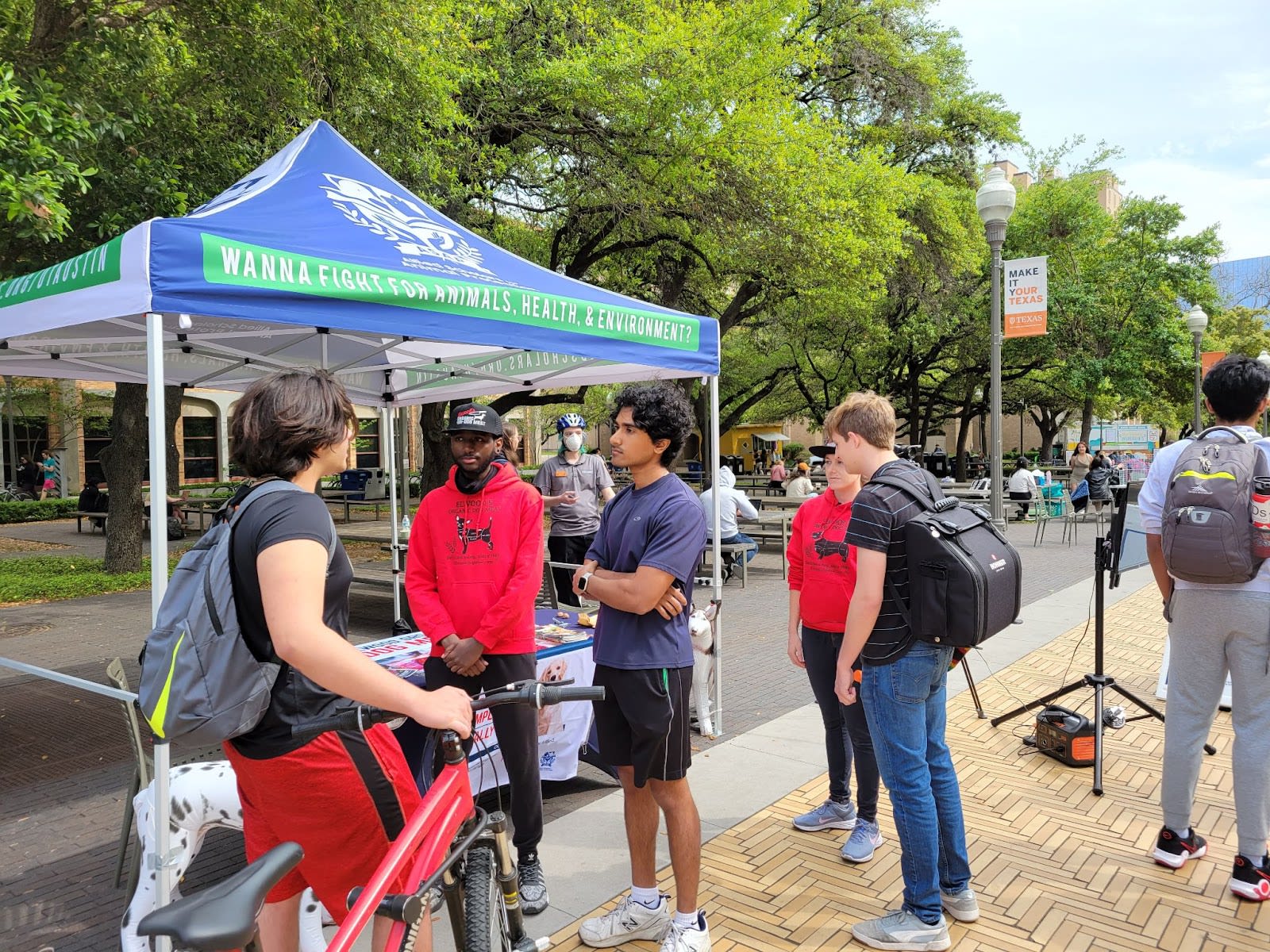 We find that a dog meat stand draws a lot of attention and is a very effective way to initiate meaningful conversations about the ethics of animal consumption. We also put up flyers around campus inviting folks to join us for samples!