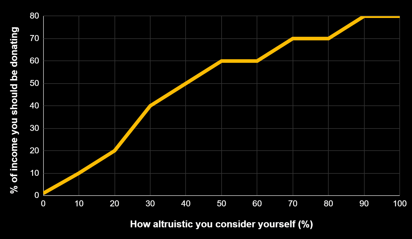 Fig. 4 How big of a fraction of your post tax income you should be donating, based on how altruistic you wanna be.