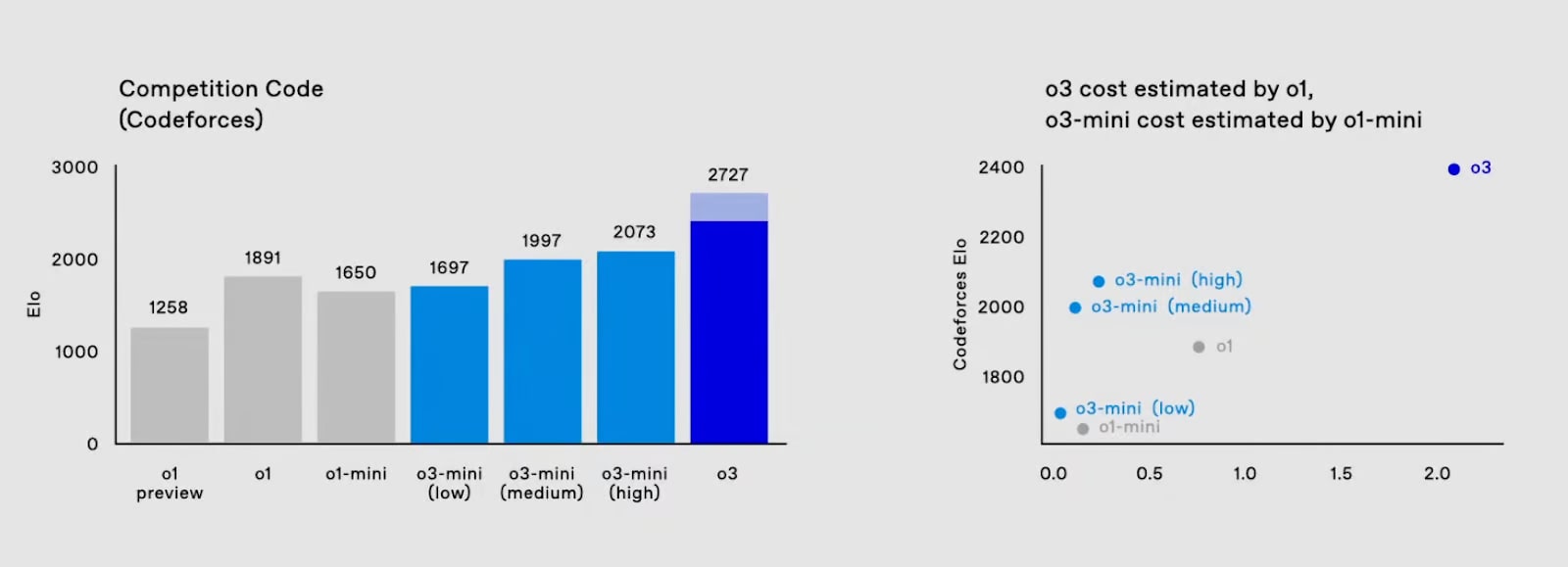 The Codeforces Elo progression from o1-mini to o3-mini was around 400 points (with compute costs held constant). Similarly, the Elo jumps from 4o (~800) to o1-preview (~1250) to o1-mini (~1650) were also each around 400 points (the compute costs of 4o appear similar to those of o1-mini, while they're higher for o1-preview).