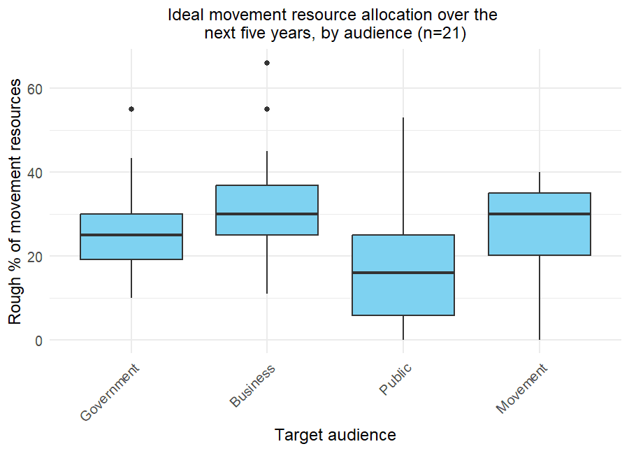 Figure 5: Ideal movement resource allocation (%) over the next five years, by target audience