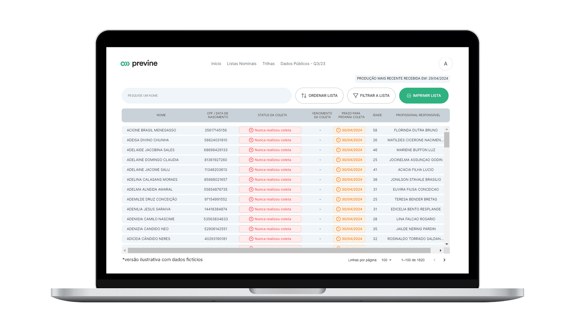 Data Infrastructure: Over 90% of Brazil’s 57,000 primary care clinics use electronic medical records, and data is standardized and sent to the federal government. This allows us to develop highly scalable solutions using data already collected by the public system. For example, the photo below illustrates one of our reports from IP. We are able to access the nominal data of patients and accurately identify those who need closer monitoring. We do this without any effort to collect primary data, as this information is already collected by the professionals.