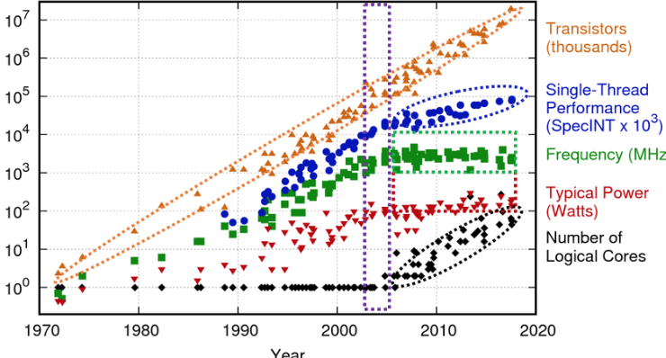 - A sudden breakdown in Moore's Law