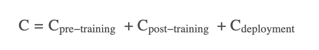 Let’s focus on the total amount of compute used for an AI system over its lifetime as the cost of that system (though this is not the only thing one might care about). The total amount of compute used for an AI system is equal to the amount used in training plus the amount used in deployment: