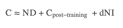 ) is the bulk of the total (including C ≫ C + C, there are some simple approximations for the costs of scaling. If , then scaling pre-training by 10x increases costs by nearly 10x, while scaling inference-at-deployment () by 10x doesn’t affect the total much. Whereas if , then scaling pre-training by 10x increases costs by ~3x (from the larger number of parameters needed at deployment), while scaling inference-at-deployment by 10x increases costs by nearly 10x. So there is some incentive to balance these numbers where possible.