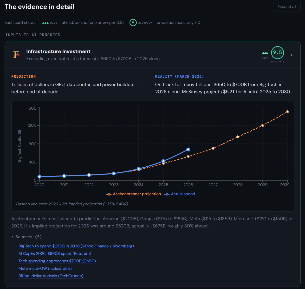 - Infrastructure investment and algorithmic efficiency are tracking ahead of his predictions.