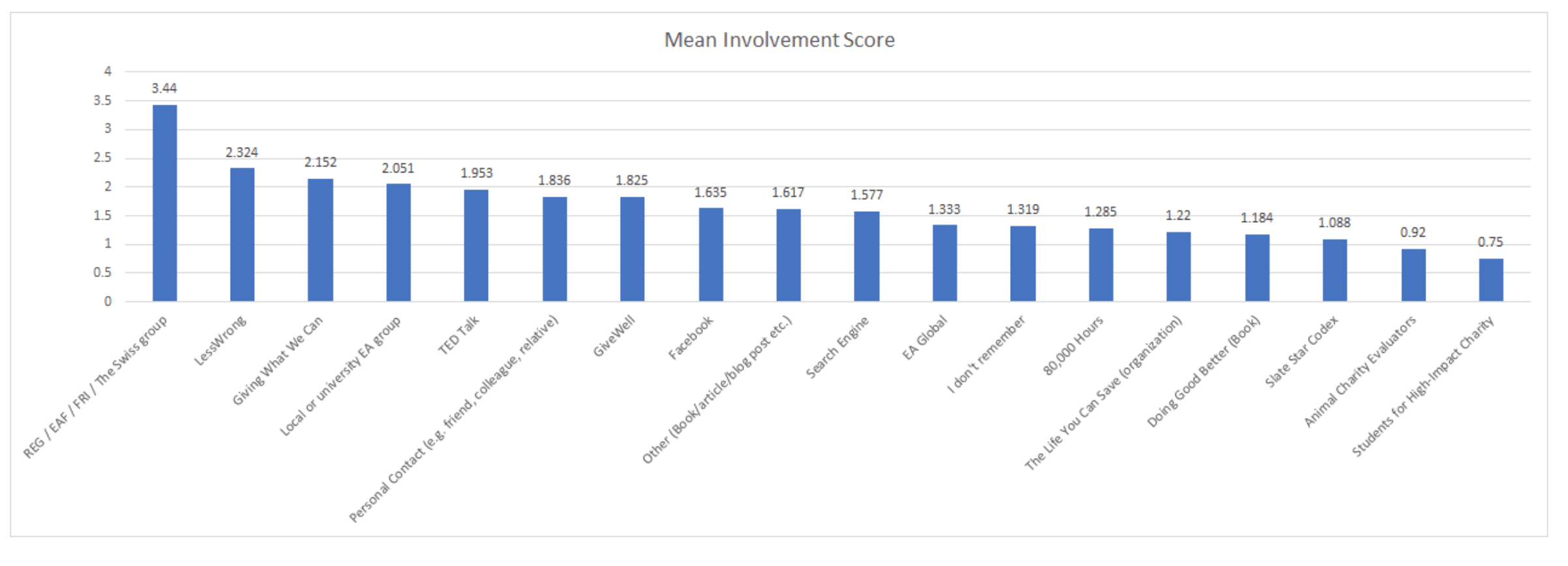 We also examine the percentage of EAs first hearing about EA from each source who are involved (in at least one of the EA groups listed above) versus not involved in any.