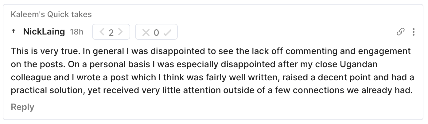 The below comments have me wondering if "Steve" and "Jane" get more engagement on the forum that "Ahmed" and "Fatima". I mean, this is an empirical question.