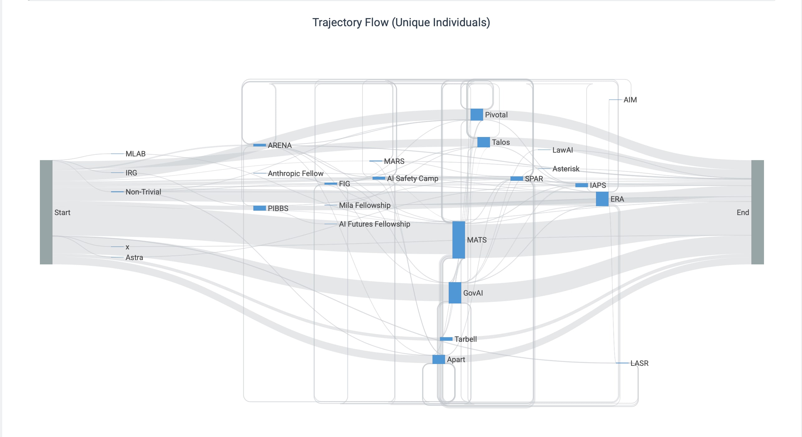 - The "Feeder Effect": Which fellowships serve as the strongest pipelines into specific top labs (e.g., Anthropic, DeepMind) versus independent research?