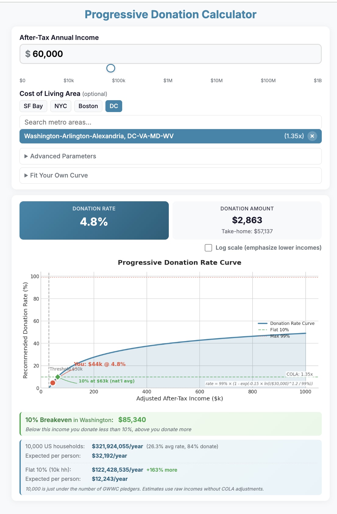 I made a tool to play around with how alternatives to the 10% GWWC Pledge default norm might change: