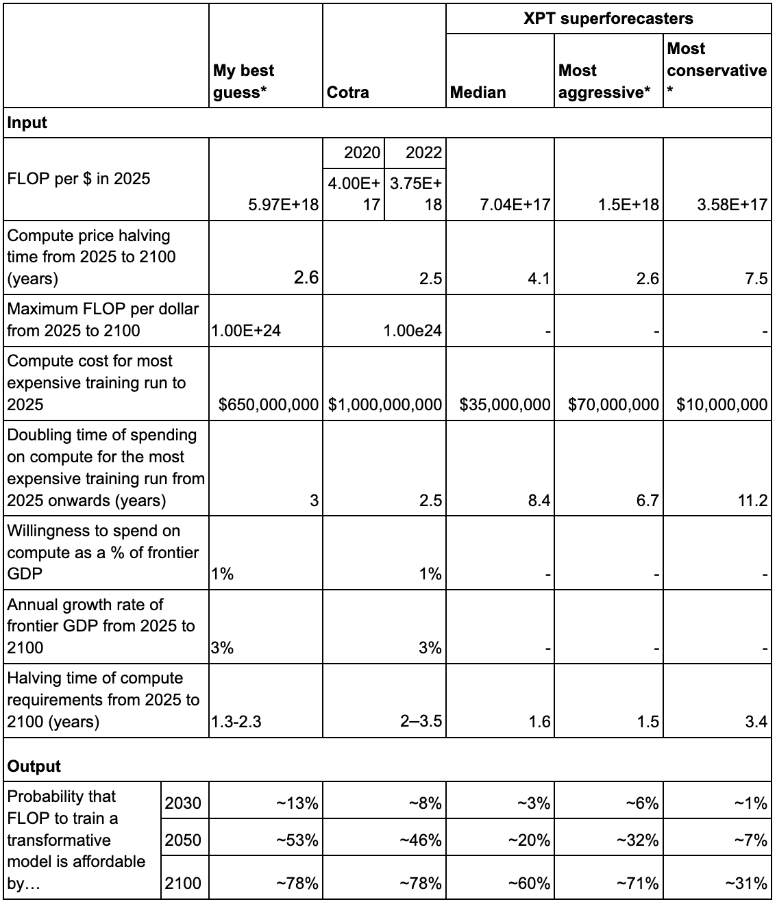 - My take is based on considering the explicit arguments that Cotra and the XPT forecasters gave, rather than on independent research.